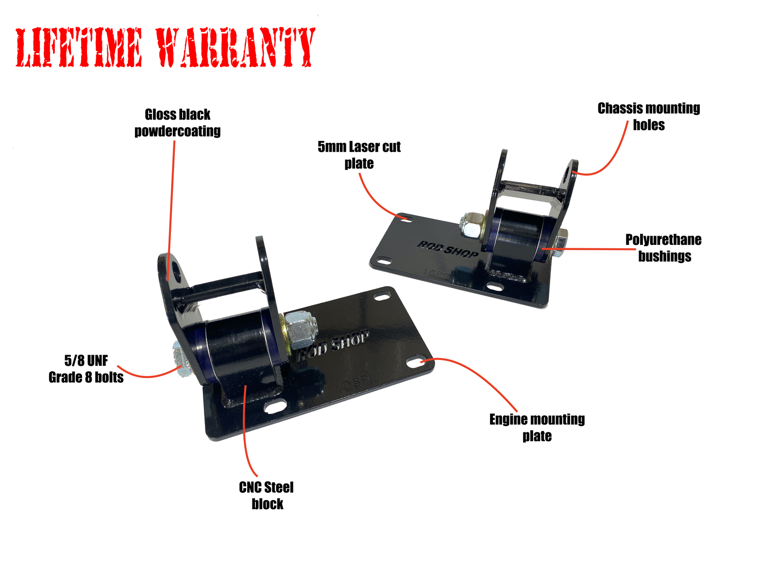 Heavy Duty Engine Mounts for Nissan RB Engines into VB, VC, VH & VK, VL, VN, VP, VR & VS V8 K Frame
