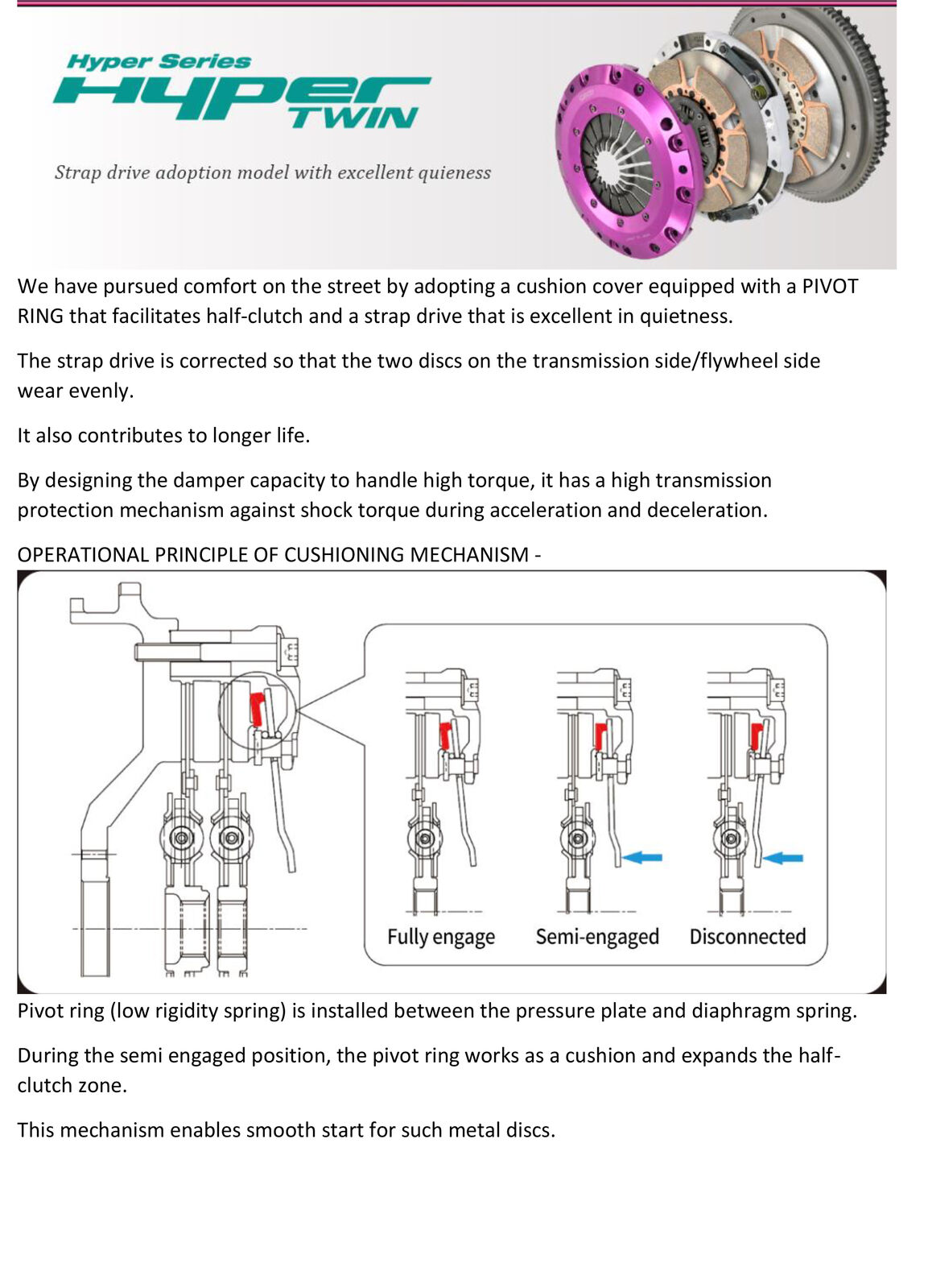 CLAMPING PRESSURE OF 1330 KGS AND HAS A TORQUE CAPACITY OF 1000 NEWTON METRES** AT THE FLYWHEEL - (**Exedy Safety factor)