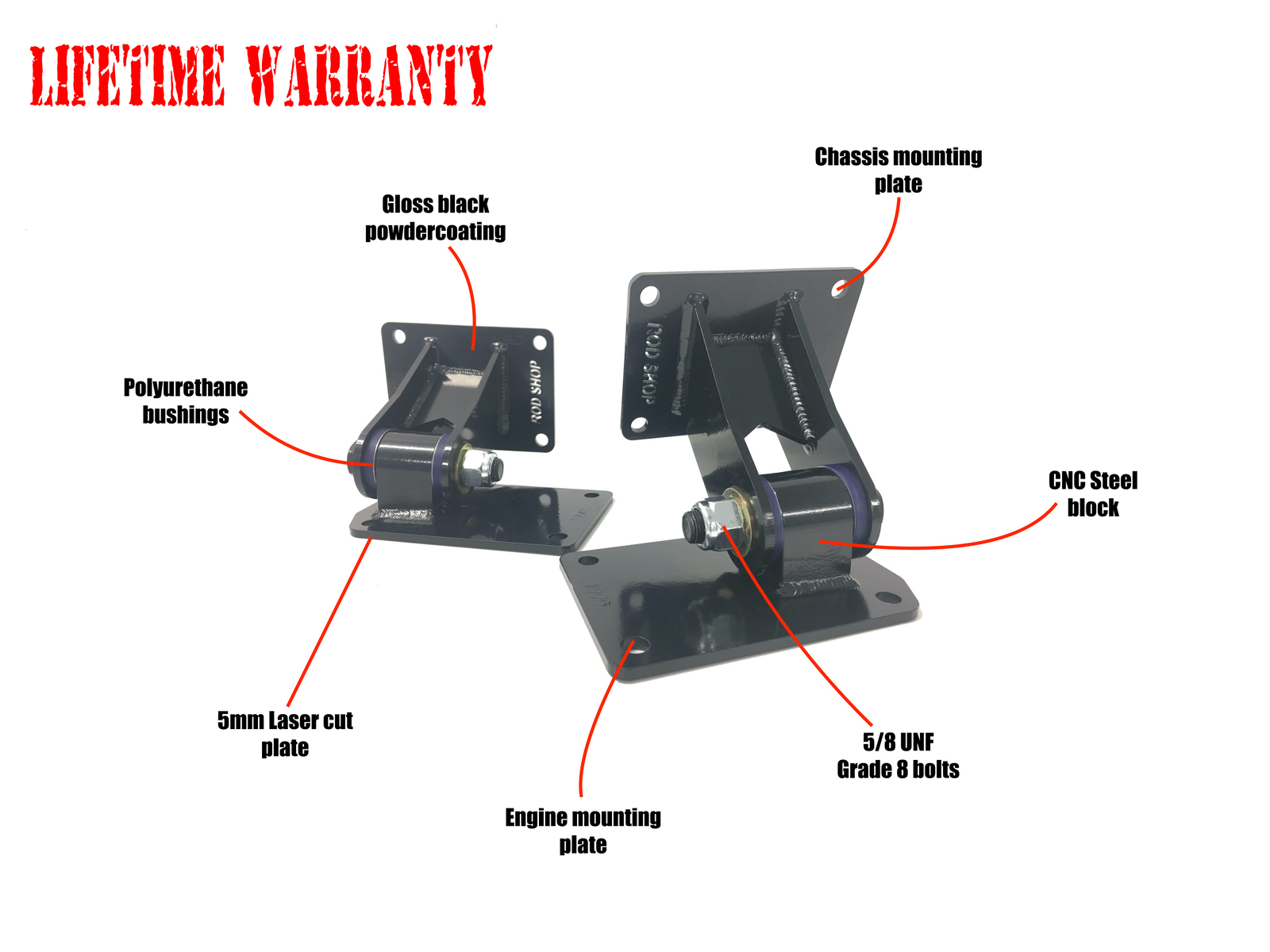 Heavy Duty Engine Mounts for Nissan RB Engines into VB, VC, VH & VK, VL, VN, VP, VR & VS V8 K Frame